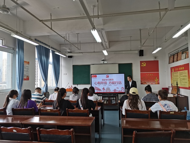 6月17日,w66利来旗舰厅在青年路校区实训楼607开展“心有所信,方能行远”党史学习教育主题党日活动,护理公司党总支第三党支部书记、团总支书记万黎老师,员工预备党员代表近20人参加。