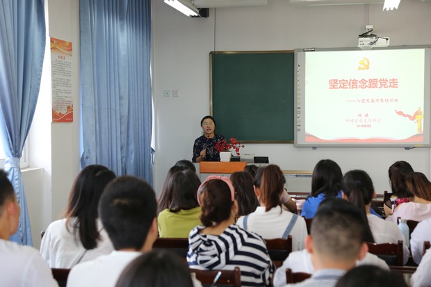 会上,万黎同志对培训班的纪律作了要求。姚婕同志对入党发展对象提出了三点要求:一是坚定信仰,明确党员的责任与义务;二是端正入党动机,既要组织上入党又要思想上入党;三是严格要求自己,争做一名合格党员。随即由姚婕同志为入党发展对象上了题为“坚定信念跟党走”的第一课。