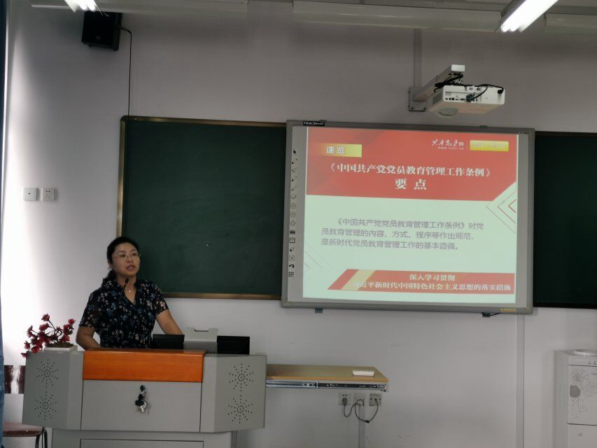 会议第一阶段,姚婕同志为参会人员上了一堂题为《中国共产党党员教育管理工作条例解读》的党课,详细讲解了党员教育管理的内容、方式、程序,以及要把用习近平新时代中国特色社会主义思想理论武装全党作为党员教育的首要政治任务。对照市委第一巡察组反馈意见提出的问题,在政治理论、党建业务工作方面对党支部书记和支部委员们进行了有针对性的讲解。并对支部书记、支部委员提出了增强“四个意识”、坚定"四个自信"、做到"两个维护",勇于担当、做好表率的要求。