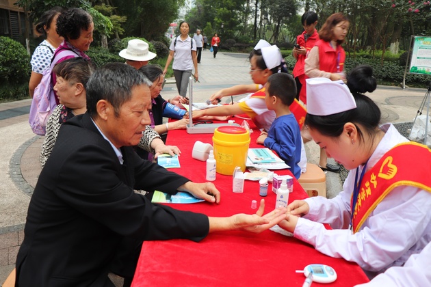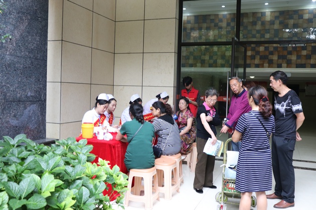 本次志愿活动分为两个小组,一组在汉碑路社区恒信上海城小区开展义诊及双创主题卫生知识宣讲,为社区居民免费测量血糖血压,发放老年健康知识手册,结合公司专业特色向社区居民普及正确卫生防病治病意识;另一组党员志愿者在汉碑路社区爱国苑小区开展双创卫生清扫及入户宣传,护理公司党总支书记姚婕、兼职组织员叶芋伶与社区负责人就爱国苑小区双创工作开展情况进行自查模拟测评,进一步加强衔接沟通,对前期工作进行梳理,查漏补缺,确保“联包帮”工作落地落实。