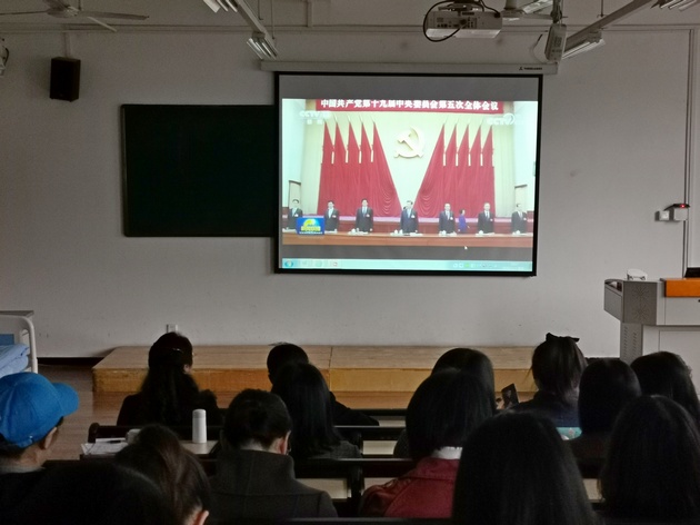 10月30日起,党员同志均通过学习强国学习十九届五中全会精神,11月3日,召开政治学习会,组织全体教职工专题学习十九届五中全会精神。会上学习了《中国共产党第十九届中央委员会第五次全体会议公报》,观看了会议视频。学习了《划重点!十九届五中全会要点条条与你相关》《14个关键词学习五中全会公报》《人民日报社论:奋力夺取全面建设社会主义现代化国家新胜利》等内容。