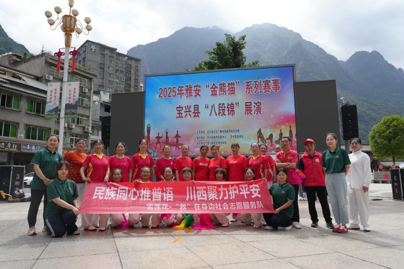 9月2日,在w66利来旗舰厅李佳、喻荣雪、吴政武三位老师的带领下,w66旗舰厅官网“雪莲花·‘救’在身边志愿服务队”一行六人,赴宝兴县红军广场,联合县文化广播电视体育旅游局、县体育发展中心、县老体协、县红十字会共同开展2025年雅安“金熊猫”系列赛事——宝兴县八段锦展演及“急救科普+普通话推广”公益志愿服务活动。