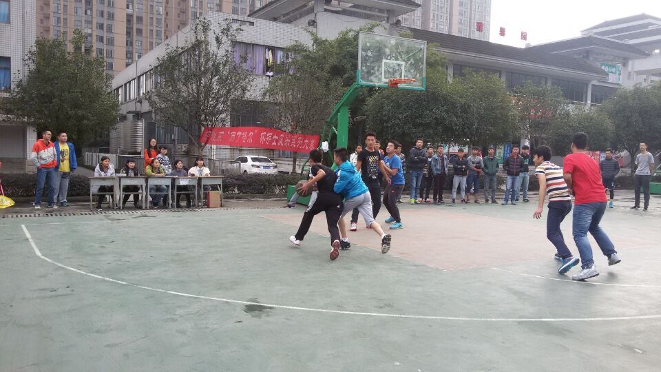 男子篮球赛分两队,共四组,分别由辅导员陈静、高佳慈老师和辅导员陈平和邓蓓老师带领的班级组成。篮球赛场上,伴随着裁判员清脆的哨声,两队便迅速拉开了战幕。双方队员也快速进入状态,队员之间默契的配合,传球、运球、完美的扣篮和精准的投篮、神一般的三分球稳稳投中,赢得在场观众的热烈掌声与尖叫,掀起了比赛的阵阵热潮。经过激励的精彩角逐,最终以陈静和邓蓓老师班级获胜进入下一轮比赛。